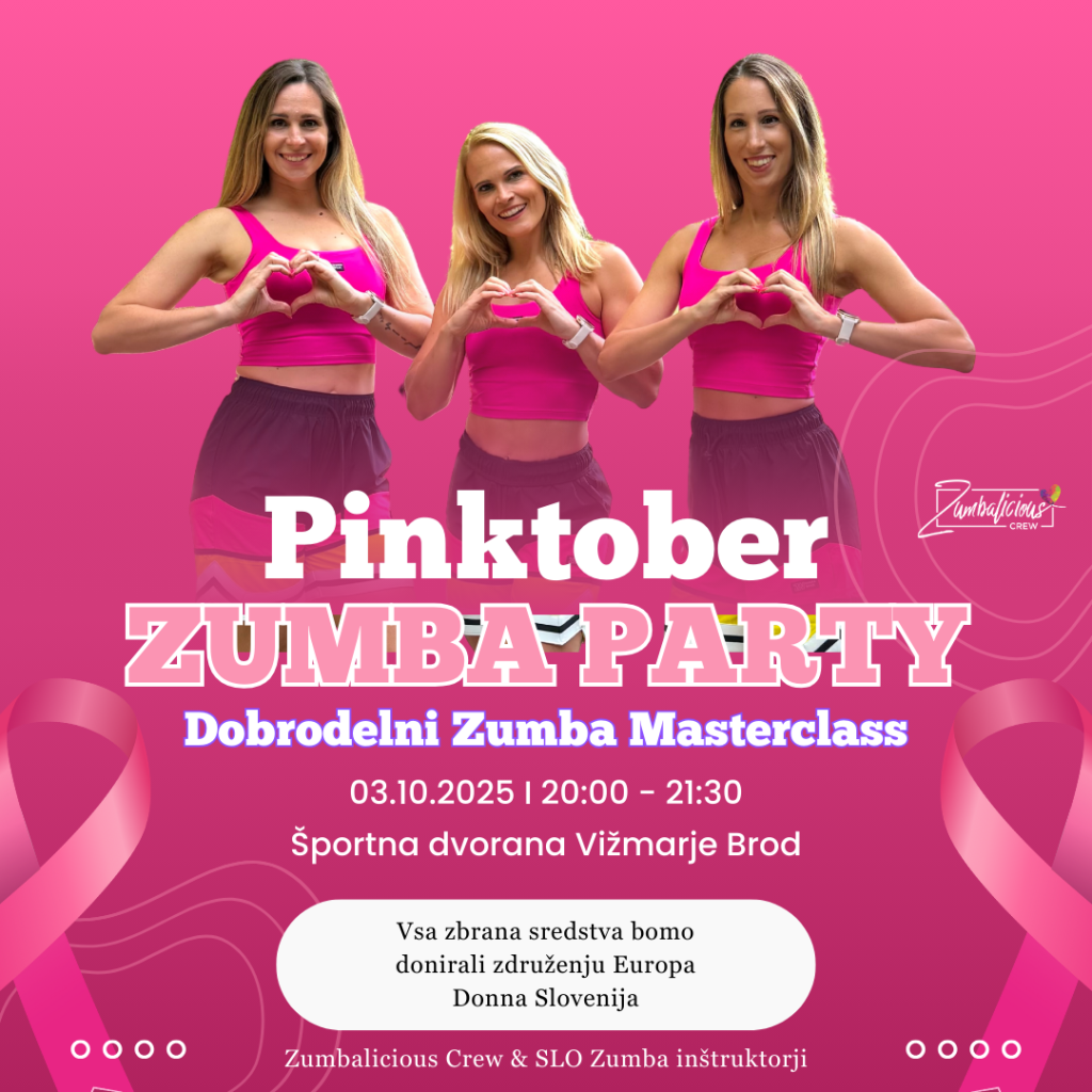 Join us for a special Zumba Masterclass in support of the fight against breast cancer. We will dance, have fun, and raise donations for the organization Europa Donna Slovenia.