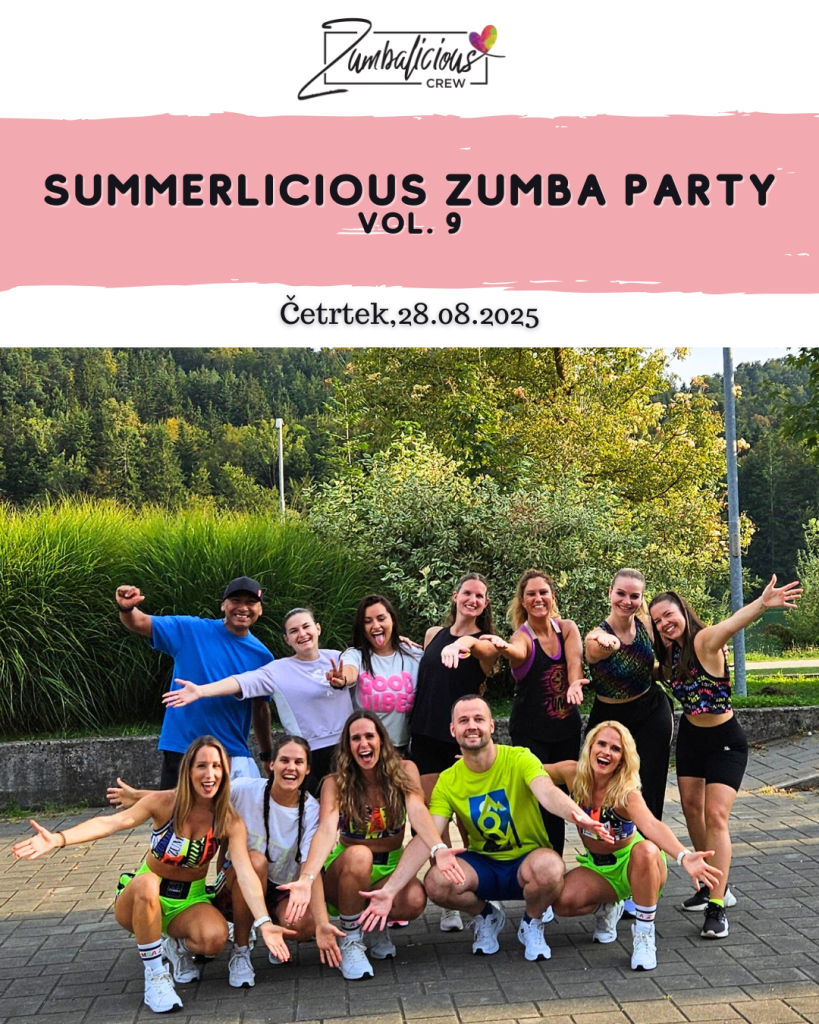 Join us for the ultimate ZUMBA® PARTY with Slovenian Zumba® instructors! Get ready for an unforgettable evening filled with amazing music, uplifting energy,and endless smiles as we dance, celebrate, and say goodbye to summer in true Zumba® style!
