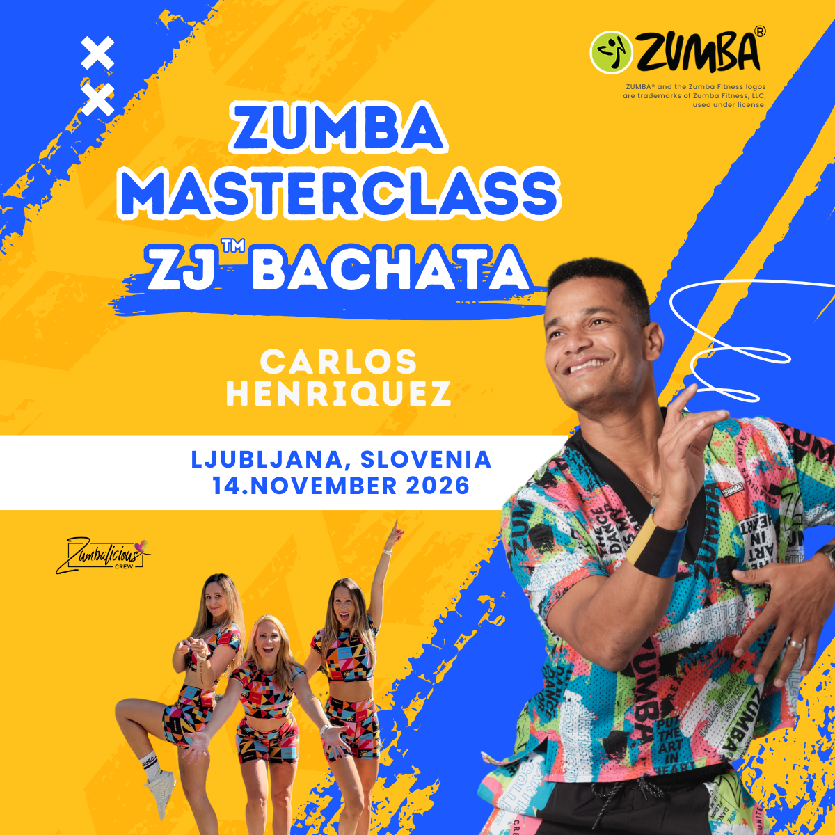 Jeseni 2026 vabimo vse Zumba navdušence na nepozaben ZUMBA® MASTERCLASS s Carlosom in Zumbalicious Crew. Carlos, rojen v Santo Domingu, rojstnem kraju bachate, je svojo plesno osnovo zgradil skozi folklorne plesne treninge in šolanje na Nacionalni baletni šoli Dominikanske republike. Po selitvi v Kanado je razvil uspešno mednarodno kariero kot fitnes inštruktor, Zumba® inštruktor in Zumba® Jammer, svoje koreografije in pristni bachata stil pa deli z ZIN™ člani po vsem svetu. Po svetu je znan kot El Bachatu, ki s pristnim gibanjem, karizmo in edinstvenim bachata stilom navdihuje tisoče ljudi.